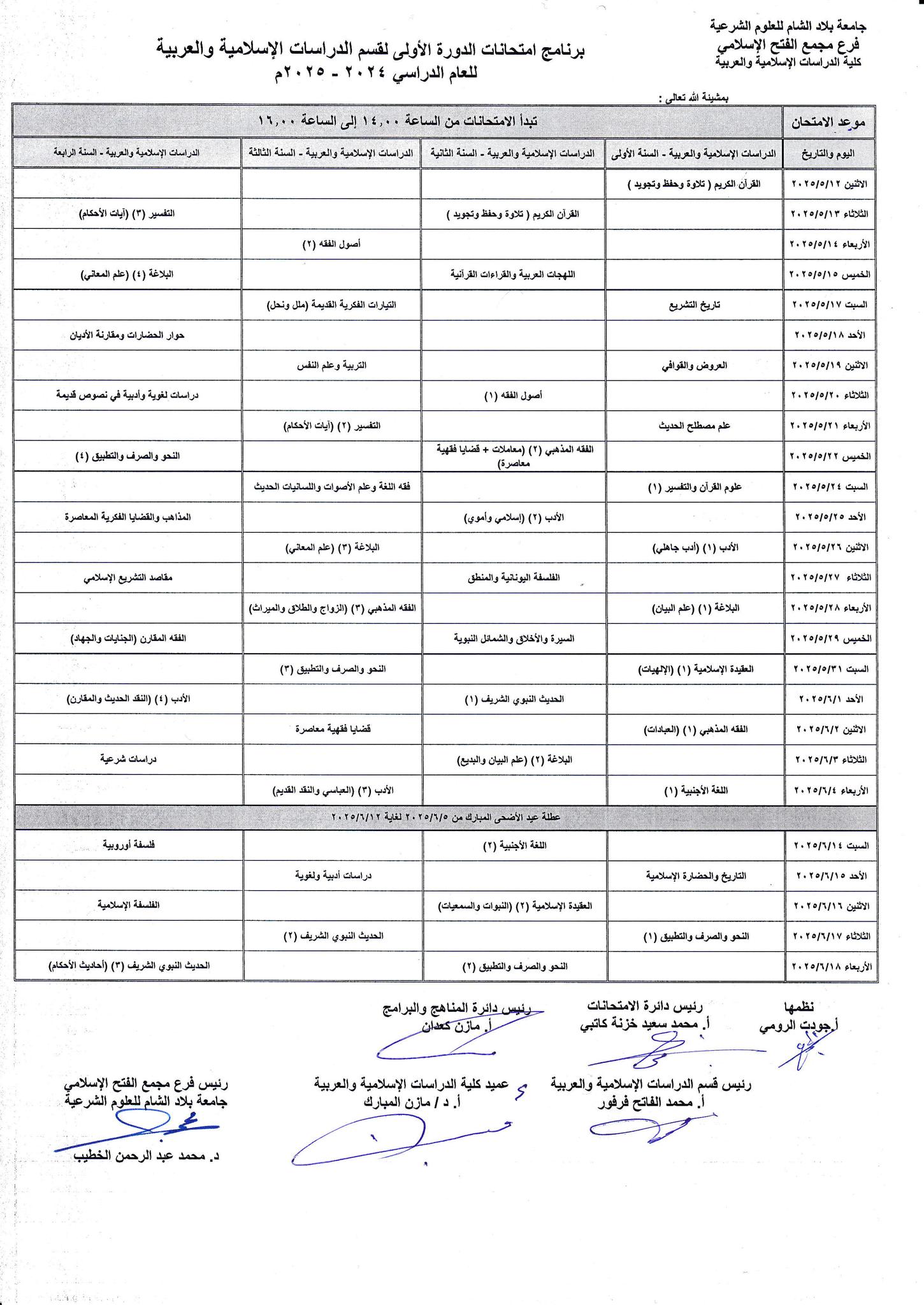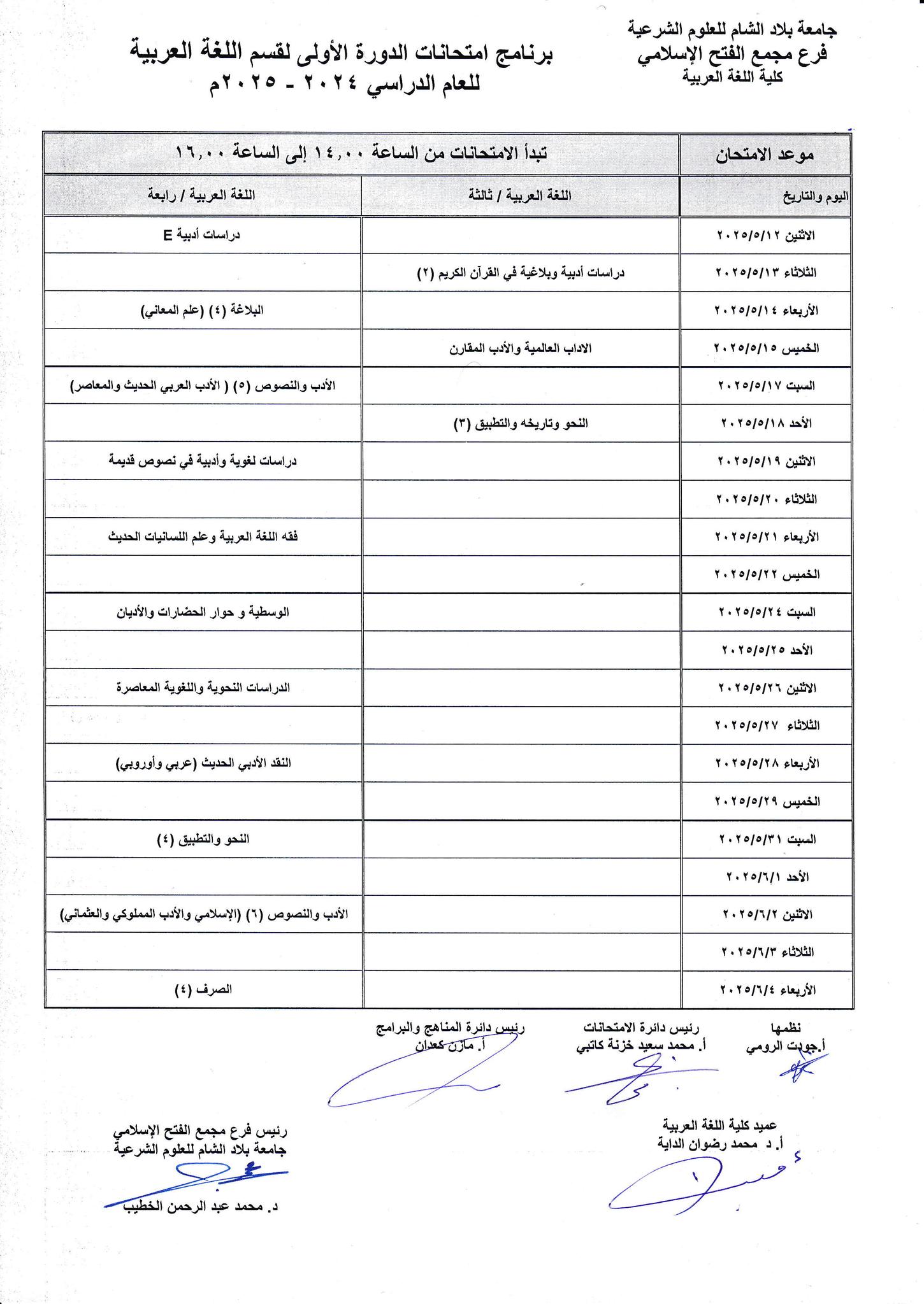 برنامج امتحان الدورة الأولى للعام الدراسي 2024-2025م