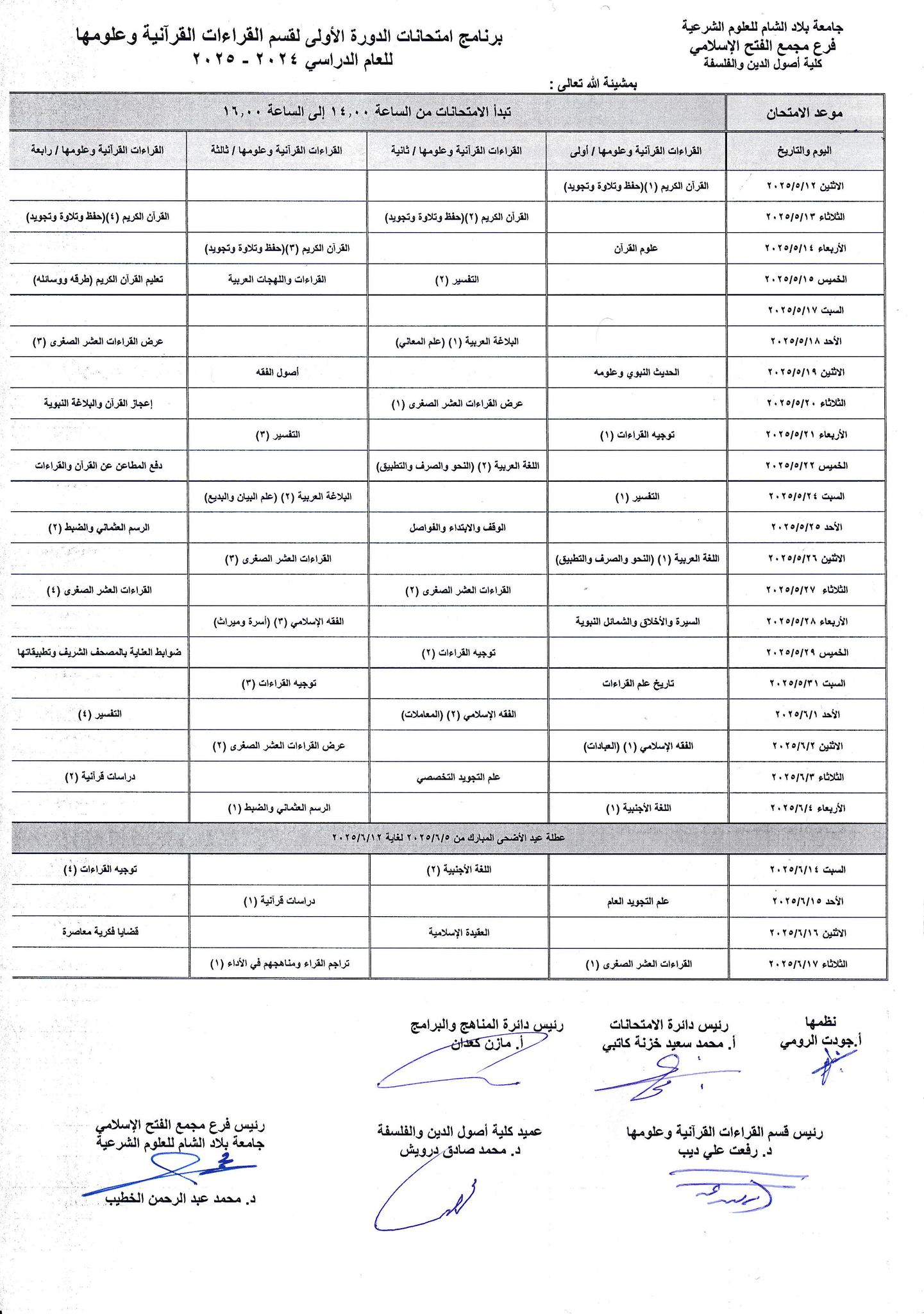 برنامج امتحان الدورة الأولى